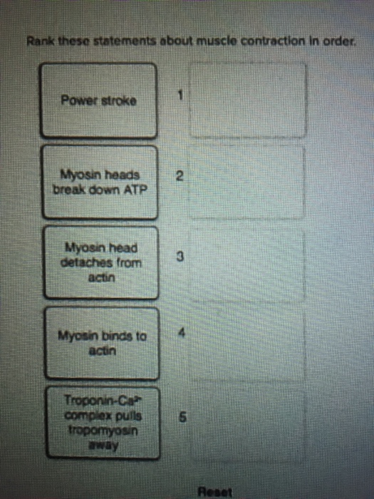 Solved Rank These Statements About Muscle Contraction In Chegg Com